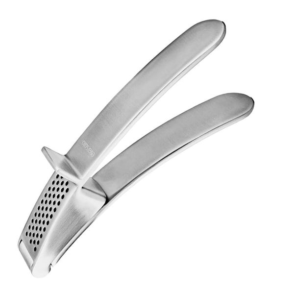 Vitlökspress från Eva Solo i rostfritt stål, 16 cm. Enkel att använda både i handen eller direkt mot bordet med ett lätt tryck ovanifrån.