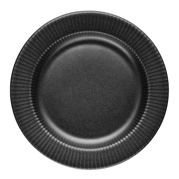 Legio Nova assiett 19 cm från Eva Trio är ett elegant val för både desserter och förrätter. Den mattsvarta finishen och subtila räfflade mönstret skapar en stilfull ram som framhäver maten på ett delikat sätt. Som en modern tolkning av det klassiska Legio Nova-serviset tillför assietten en spännande djup och kontrast till dukningen, inspirerad av det nordiska kökets rustika estetik.