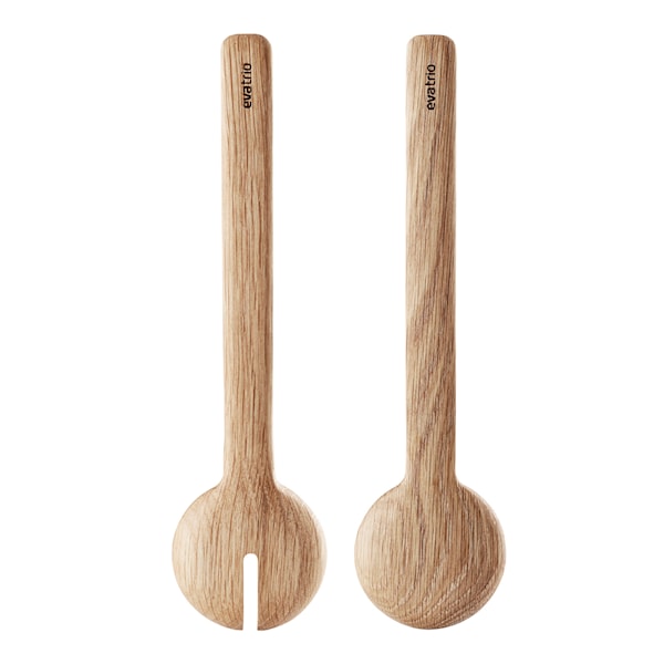 Eva Solo salladsbestick i ek 30 cm är ett nordiskt serveringsset i massiv ek som kombinerar naturlig känsla med genomtänkt design. Det rustika träet och de mjuka formerna gör det både behagligt att använda och vackert att duka med.