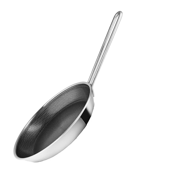 Trelagerstekniken ger jämn värmefördelning och en slitstark konstruktion som klarar upprepad användning. Passar till all slags matlagning – från stekta ägg till kött och vegetariska rätter – och fungerar på alla värmekällor, inklusive induktion. Tål även ugn upp till 400 °C.