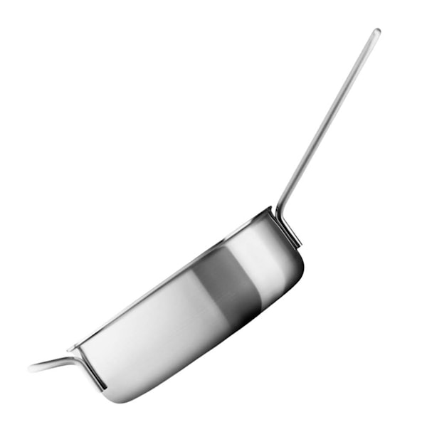 Trelagerskonstruktionen med aluminiumkärna ger snabb och jämn värme i hela pannan – även upp längs sidorna. Insidan är spegelblank för enkel rengöring, medan det långa skaftet i rostfritt stål håller sig svalt. Pannan är tillverkad av återvunnet stål och aluminium – ett genomtänkt val för köket.