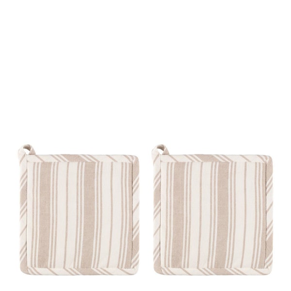 Fanni K Linnea grytlappar kombinerar stil och funktion i ett praktiskt 2-pack. Tillverkade av en blandning av 55 % linne och 45 % bomull, erbjuder de en naturlig känsla med slitstarka egenskaper. Fyllningen i polyester ger extra värmeskydd vid matlagning. Den randiga designen ger en tidlös touch till köket.