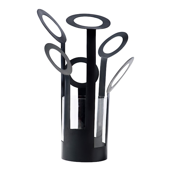 - Stilren vas i mässing eller svart med skulptural form