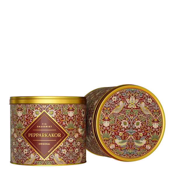 Den generösa burken på 430 g, klädd i vinrött med William Morris klassiska mönster, rymmer delikata pepparkakor som sprider glädje och kanske lite extra snällhet.
