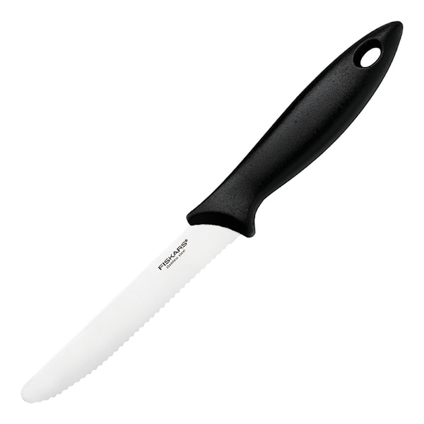 Tomatkniv från Fiskars. Det sågtandade bladet är perfekt för att skära tomater och liknande mjuka grönsaker med tjockt skal. Tål maskindisk.