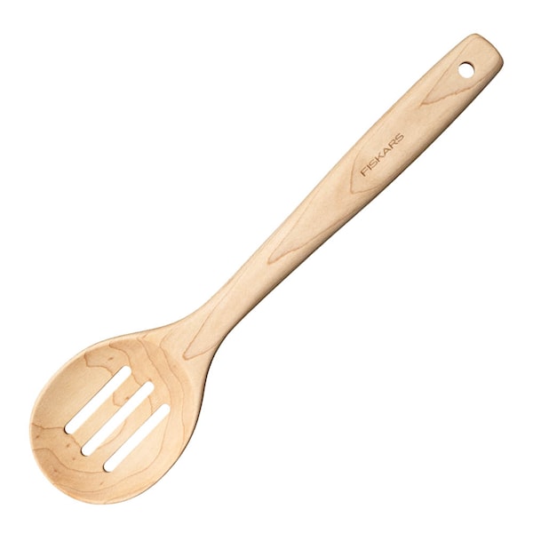 Fiskars Folken träslev med skåror 29 cm gör matlagningen enklare genom att kombinera ett skyddande material med ett smart designat slevhuvud. De perforerade skårorna släpper igenom vätska och ger precision vid servering.