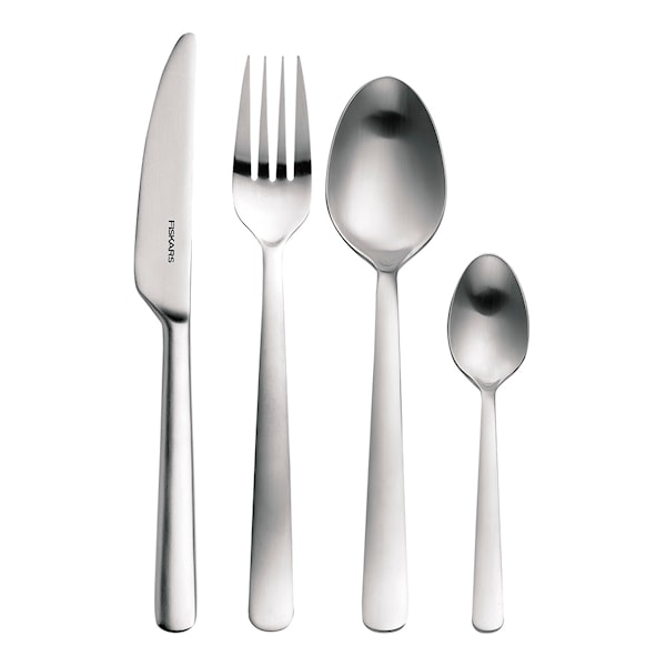 Tobias Jacobsen är designern bakom denna attraktiva serie bestick av matt rostfritt stål. Besticken i serien Functional Form bygger på en harmonisk kombination av funktionalitet och klassisk design. De ergonomiska handtagen gör besticken mycket bekväma och sköna att hålla i. Functional Form bestickset innehåller 16 delar: