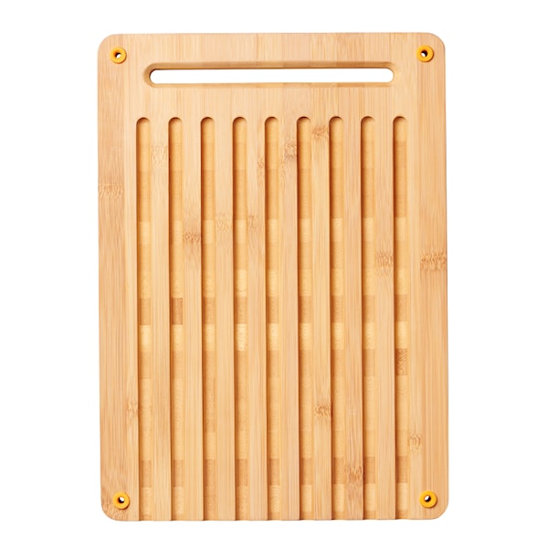 Brädan har silikonpunkter på undersidan som ger ett säkert grepp på bänken. Ytbehandlad med linfröolja för att skydda och bevara bambuns naturliga egenskaper. Diskas för hand för bästa hållbarhet.