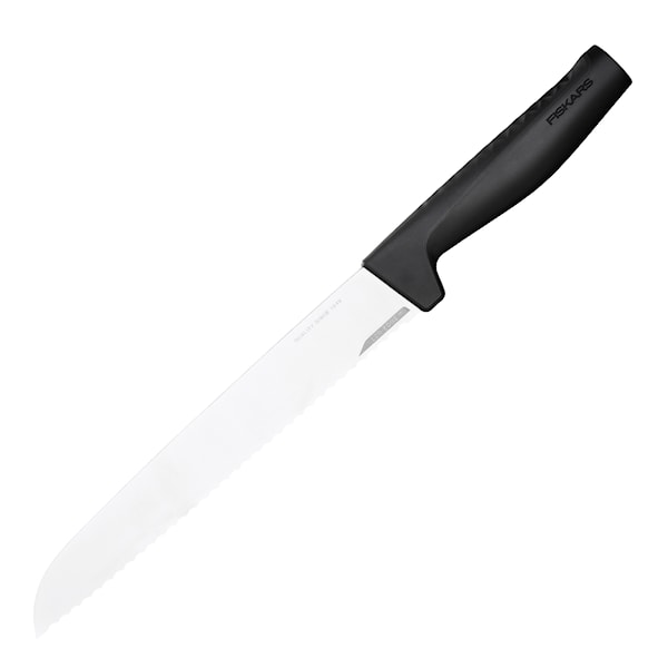 Brödkniven i Hard Edge-serien har ett tandat blad som är idealiskt för att skära bröd med knapriga skorpor. Knivbladet är tillverkat av tjockt rostfritt stål och har en egg som är behandlad med den revolutionerande LZR-EDGE™-tekniken. Det gör att dessa knivar behåller skärpan upp till fyra gånger längre än standardknivar. Handtagets ergonomiska design och unika 3D-mönster ger dessutom ett perfekt grepp.