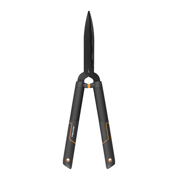 SingleStep häcksax HS22 58 cm svart, från Fiskars. En häcksax med härdade stålskär med vågprofil och friktionsminskande beläggning som är idealiska för att greppa och knipsa av grenar och kvistar.