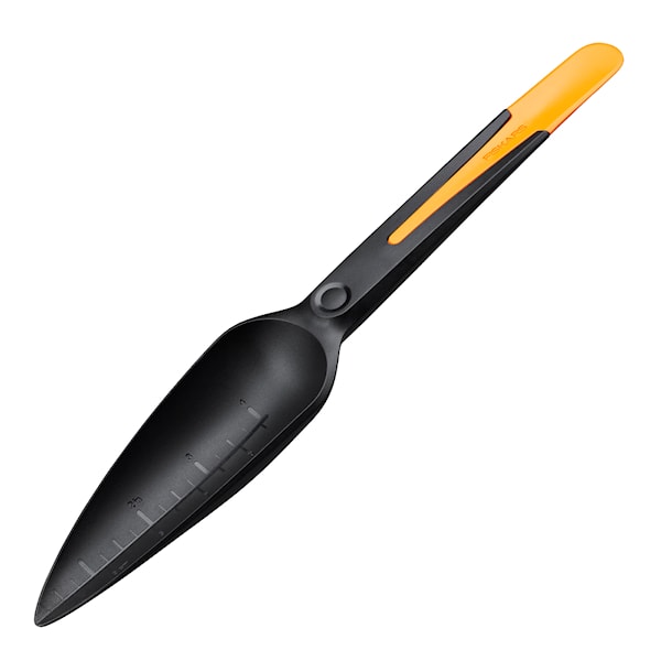 Solid Fröspade från Fiskars har en praktisk måttangivelse på bladet för att enkelt kunna mäta planteringsdjupet så att du får exakt rätt djup på det du planterar eller sår. Spaden är tillverkad i lätt FiberComp och har en inbyggd, lös frösticka med spår för exakt fröspridning vilket gör den smala fröspaden optimal för plantering både så och plantera med.
