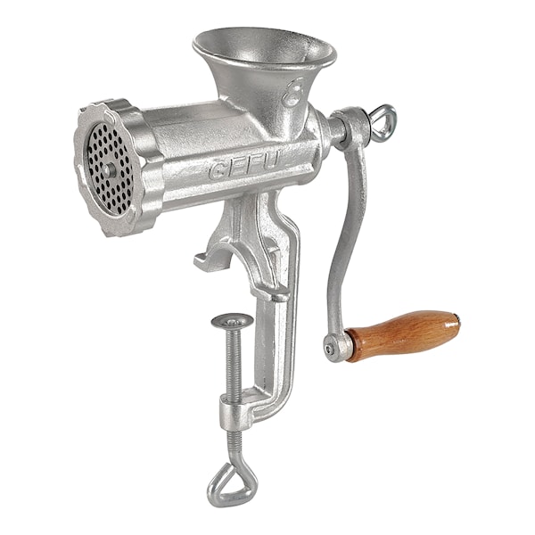 Fleischwolf är en klassisk köttkvarn ifrån det tyska kvalitetsmärket GEFU. Tillverkad i tennplaterad gjutjärn med rostfria hålskivor. Monteras på bordsskivan.