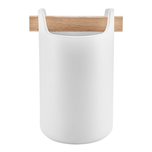 Handtaget fungerar inte bara som ett grepp utan även som en naturlig avdelare, vilket gör det lättare att organisera innehållet. Kombinera stil och funktionalitet med denna genomtänkta redskapskruka med stilren design. Finns i två storlekar och färgerna svart och vitt.