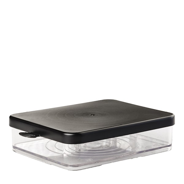 Fresh & Easy påläggsbox 45 cl i svart är en praktisk lösning för förvaring av pålägg, frukt och matrester som hjälper dig att hålla kylskåpet organiserat och överskådligt. Boxarna är designade för att minska matsvinn genom att se till att maten håller sig fräsch längre, vilket förhindrar att pålägg torkar ut före hållbarhetsdatumet. Med ett enkelt datummärkningssystem kan du enkelt hålla koll på innehållet, vilket gör matlagning och förberedelse av matlådor mer effektiv och stressfri.