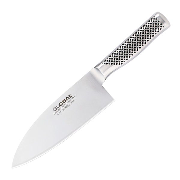 G-29 från Global Classic är en allsidig kött- och fiskkniv. Med sitt kraftiga och höga blad är den utmärkt för hantering av både fisk och fågel.