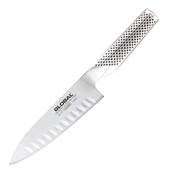 G-79 från Global Classic är en smidig och lätthanterad kockkniv med olivslipning, vilket gör att råvaran släpper lättare från bladet. Passar till såväl att hacka grönsaker som till att skära köttråvaror.