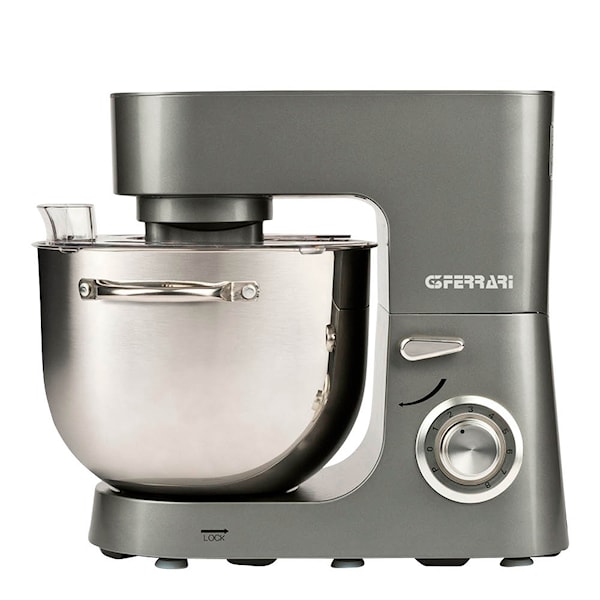 G3 Ferrari Pastaio är utrustad med en stark motor på 1800W, invändiga metallväxlar och åtta hastigheter samt pulsfunktion. Den rymliga bunken i rostfritt stål rymmer 8 liter och klarar upp till 3 kg ingredienser. Med medföljande dubbla degkrokar, flatblandare för mjukare degar och visp kan maskinen användas till allt från pizzadeg och pasta till kakor, desserter och bröd.