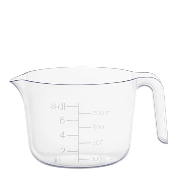 GastroMax vispskål 0,8 L i transparent plast är perfekt för mindre mängder smet, dressing eller uppmätta ingredienser. Den har tydliga volymmarkeringar upp till 8 dl samt ett stadigt handtag och pip för droppfri hällning.