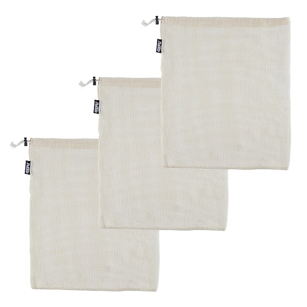 Nätpåsar från tyska Gefu att förvara frukt och grönsaker i. Praktisk att ta med till butiken när du ska handla! Bra att även använda till förvaring i t.ex. kylskåpet därhemma. Påsen dras åt med en dragsko och klarar en vikt på ca. 3 kg. Kan tvättas i maskin i 30 °C. Levereras i 3-pack.