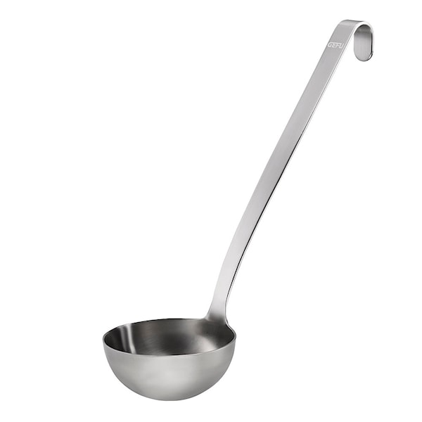 Stor soppslev ur Gefus rostfria köksserie Baseline, perfekt till soppor och mustiga grytor. Sleven har en hake så att du kan hänga upp den då den inte används. I Baseline-serien finns alla redskap du behöver för köket, samtliga med en tidlös design och tillverkade av polerat högkvalitativt rostfritt stål. Tål diskmaskin. 5 års garanti.