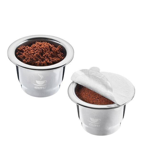 Två stycken Conscio-kapslar från tyska Gefu att användas många gånger om. Bra att ha några extra att komplettera med till Conscios kapsel-set. Snygga i rostfritt stål, bara att fylla med ditt favoritkaffe. Obs! Förseglingsskydden säljs separat.