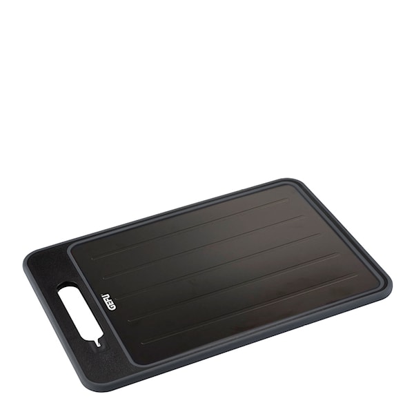 Cut Pro upptinings- och skärbräda från Gefu är den perfekta kökshjälpen för att göra både upptining och skärning smidig och effektiv. Med måtten 36,5 x 25 cm och en stilren design, erbjuder denna bräda en innovativ upptiningssida i belagd aluminium som minskar upptiningstiden för frysta livsmedel med upp till 60%, utan att kompromissa med smak eller kvalitet. Den andra sidan har en robust, halksäker plastyta med en kontinuerlig ränna för att hålla vätskor under kontroll, vilket skapar en säker och ren skärupplevelse.