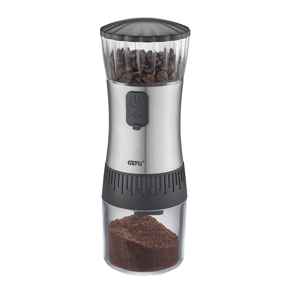 Det malda kaffet samlas antingen i en inre behållare för 3 koppar (21 g) eller en yttre behållare för upp till 10 koppar (70 g). Kvarnen laddas enkelt med USB-kabel och tar liten plats på köksbänken. Den rengörs med en fuktig trasa. Designen har utvecklats i samarbete mellan Gefu och invivo design i Berlin och är anpassad för olika bryggmetoder och vardagsanvändning.