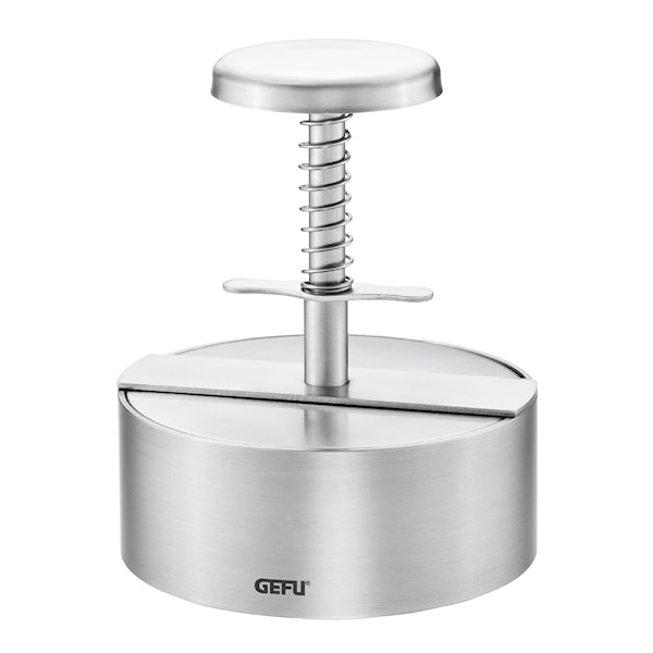 Patti hamburgerpress 11,5 cm stål från Gefu är det perfekta verktyget för burgarentusiaster som vill ha jämna och perfekt formade burgare varje gång. Med en invändig skala kan du enkelt mäta upp rätt mängd köttfärs, från 100 g till 400 g, så att du kan göra allt från klassiska små burgare till extra stora XL-varianter.