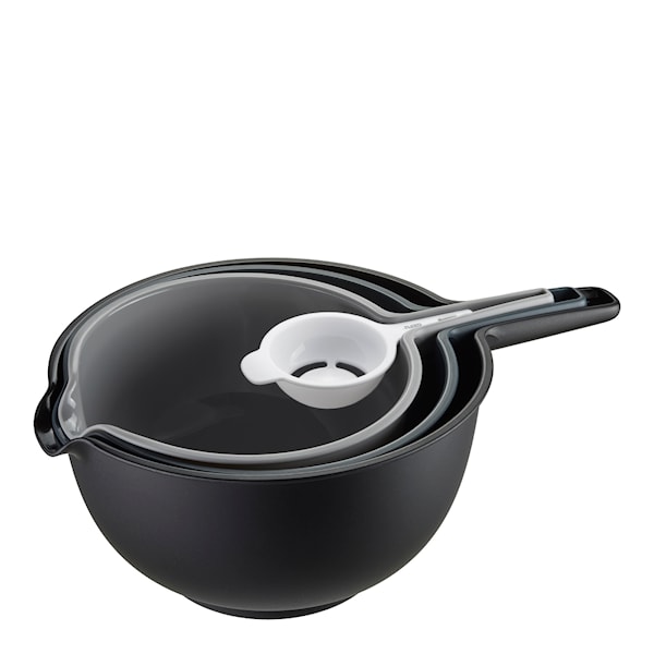 Ett mycket praktiskt och användbart skålset vid namn Preparo i 4 delar från tyska Gefu. De kan förvaras i varandra och tar därför minimalt med plats i skåpet.