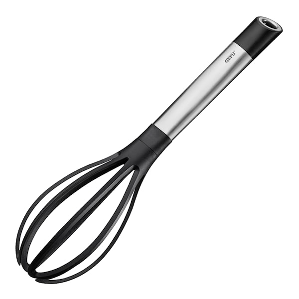 Denna visp från tyska Gefu är mycket mångsidig till det mesta som ska vispas i köket. Gräddsåser, skummande äggvitor, pannkakssmet och mycket mer. Ligger skönt i handen med sitt ergonomiska handtag och är perfekt för användning i belagda skålar och kokkärl då den med sin vispdel i nylon inte repar. Värmetålig upp till 210 °C