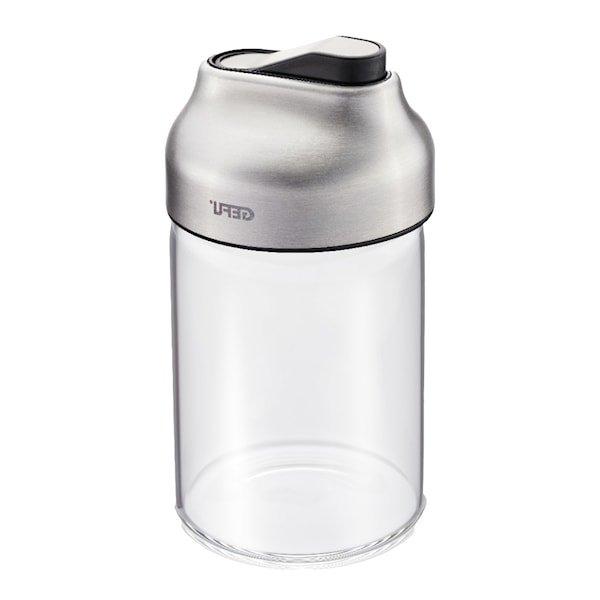 Dispensern öppnar och stänger automatiskt, vilket skyddar innehållet mot yttre påverkan och håller det fräscht. Tillverkad av slitstarkt borosilikatglas, plast och högkvalitativt rostfritt stål, kombinerar den funktionalitet med en elegant design som passar perfekt på ditt bord. Observera att denna dispenser inte tål diskmaskin och bör rengöras försiktigt för att bevara dess kvalitet och utseende.