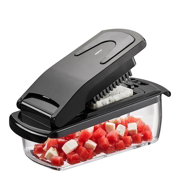 Gefu Treppo grönsakshackare är en multihackare som ger dig full kontroll i köket – oavsett om du ska hacka frukt, grönsaker, ost eller potatis i perfekta strimlor eller kuber. Den tyska kvaliteten märks i varje snitt, och med två utbytbara skärgaller – 7x7 mm och 13x13 mm – kan du enkelt välja bitstorlek beroende på rätt och behov.