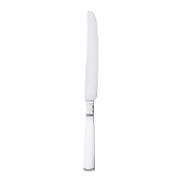 Rosenholm kniv 22,5 cm i 830 silver från Gense, ingår i den eleganta Rosenholm-serien som är känd för sin enkla men raffinerade form med små uttrycksfulla detaljer. Den mattpolerade ytan på silvret ger kniven ett modernt och tidlöst utseende.