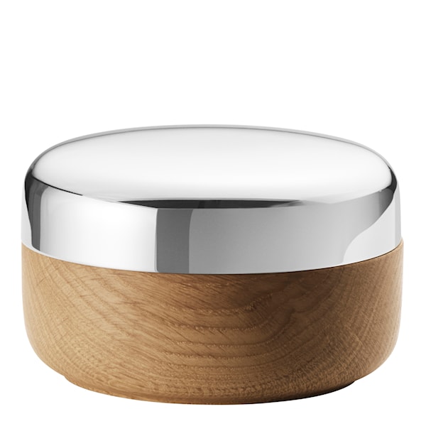 Tillverkat i massiv ek som ger saltkaret en robust men lätt känsla. Locket i blankpolerat rostfritt stål ger designen ett distinkt uttryck. Den praktiska, medföljande skeden ligger på sin plats i saltkaret så att den alltid finns nära till hands.