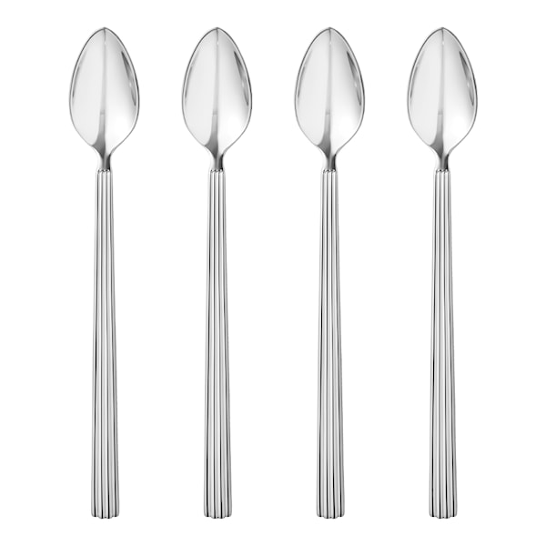 Lång sked från Georg Jensen i Sigvard Bernadottes originaldesign, tillverkad av rostfritt stål. Med den generösa längden på 18 centimeter passar den perfekt som lattesked eller till en god drink. Skedarna är tillverkade i polerat, rostfritt stål och har en räfflad formgivning som ger en elegant och sofistikerad känsla. Setet kommer i en presentasken vilket gör det till en perfekt gåva.