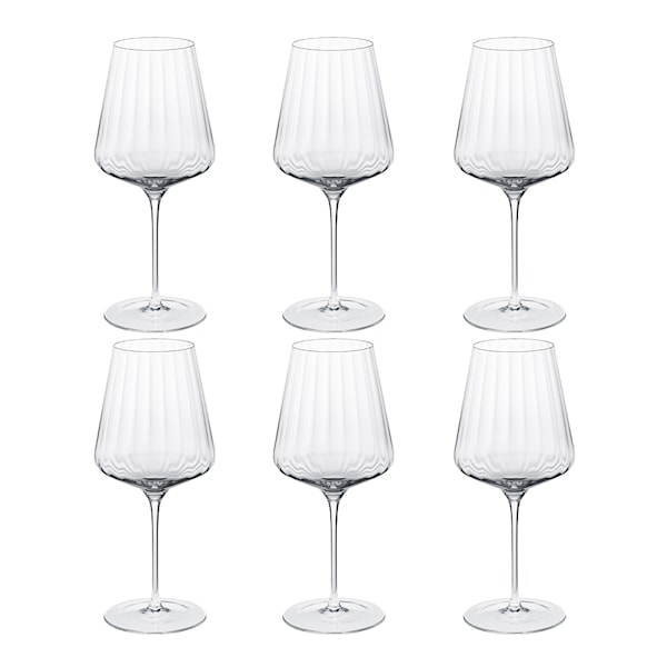 Georg Jensen Bernadotte Rödvinsglas 54 cl 6-pack är eleganta glas som förenar klassisk design med modern funktionalitet. Den generösa kupan på 54 cl låter vinets aromer utvecklas fullt ut, medan de dekorativa räfflorna ger vinglasen en unik karaktär och en härlig vintagekänsla. Räfflorna gör dem dessutom greppvänliga, vilket gör upplevelsen lika praktisk som estetisk.