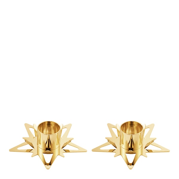 Classic Christmas ljusstake stjärna 2-pack från Georg Jensen är tillverkade i förgylld mässing och bygger på Flemmings ikoniska stjärndesign från 1952.