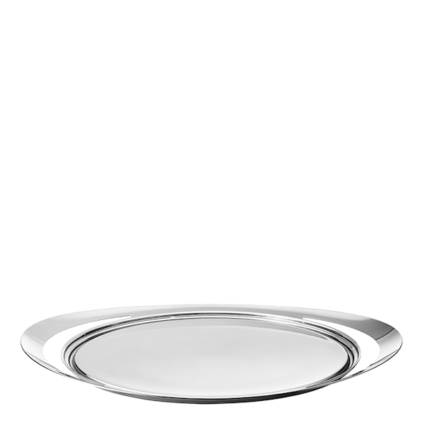 Cobra Serveringsbricka från Georg Jensen är en bricka i polerat rostfritt stål som låter dig servera helgfrukosten eller fikat med stil. Med sin mjukt böljande design ger den avskalad elegans på bordet, och passar lika bra stående på ett bord på egen hand med ett vackert stilleben på. Tack vare sin smarta design med inbyggda handtag är brickan enkel att bära.