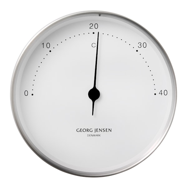 Termometer från Georg Jensen och formgivaren Henning Koppel. Koppel började formge urverk 1978 och utökade sedan sitt sortiment till att också omfatta väderstationer och andra praktiska produkter.