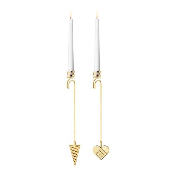 Jul 2025 ljusstakar till julgranen 2 st hjärta och strut i guld från Georg Jensen är dekorativa ljusstakar för julgranen.