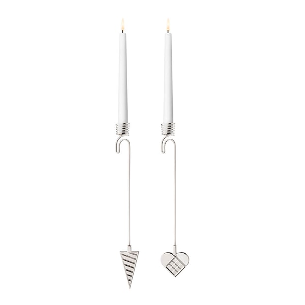 Jul 2025 ljusstakear till julgranen 2 st hjärta och strut i silver från Georg Jensen är dekorativa ljusstakar för julgranen.