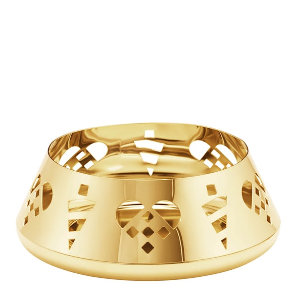 Jul 2025 ljushållare för blockljus 4x10,5 cm i guld från Georg Jensen kombinerar skandinavisk tradition med modern formgivning. Ljusstaken är pläterad med 18 karat guld och dekorerad med utskurna motiv av flätade hjärtan och kremmerhus.
