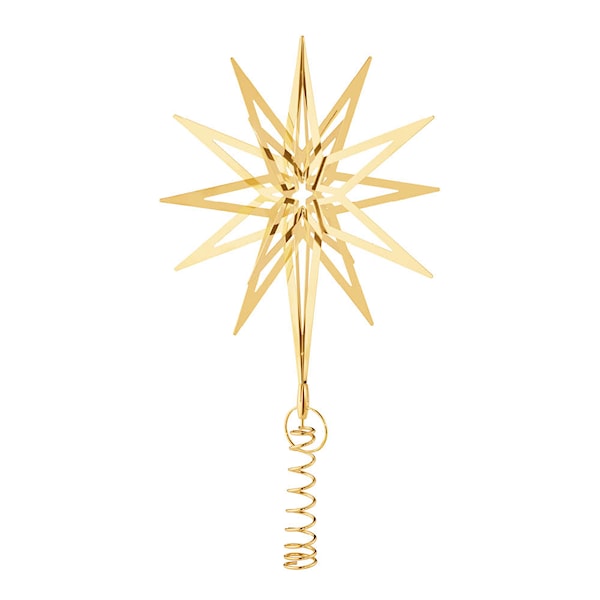 Jul 2025 Lyra julgransstjärna mellanstor 22,5 cm i guld från Georg Jensen är tillverkad i rostfritt stål och pläterad med 18 karat guld.