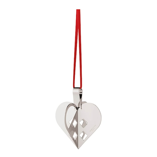 Jul 2025 ornament hjärta 5,4x6,3 cm i silver från Georg Jensen är en elegant del av årets kollektion. Tillverkat i palladiumpläterad mässing, inspirerat av de flätade julhjärtan som traditionellt gjordes för hand under 1800-talet.