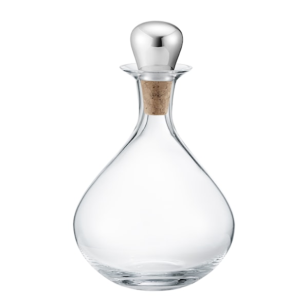 Dekanterings-karaffen i kristallglas med stålkork ur serien Sky från Georg Jensen ger möjlighet att lufta vinet och samtidigt visa upp det på ett elegant vis. Denna exklusiva karaff i organisk form förgyller alla stunder och bord.