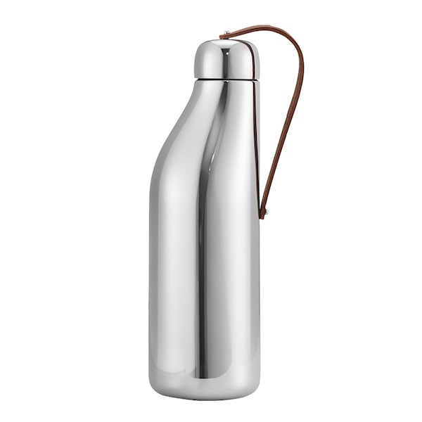 Sky vattenflaska från Georg Jensen är tillverkad i rostfritt stål och kombinerar funktionalitet med en stilren design. Flaskan rymmer 500 ml och mäter 22,8 cm i höjd med en diameter på 7 cm. Designen är skapad av Aurélien Barbry och kännetecknas av rena linjer och en elegant form.