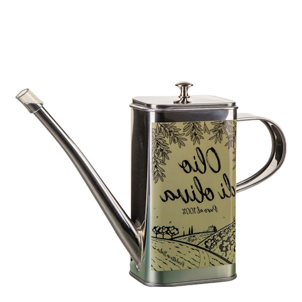 Snygg olivoljekanna i plåt som rymmer 500 ml olivolja