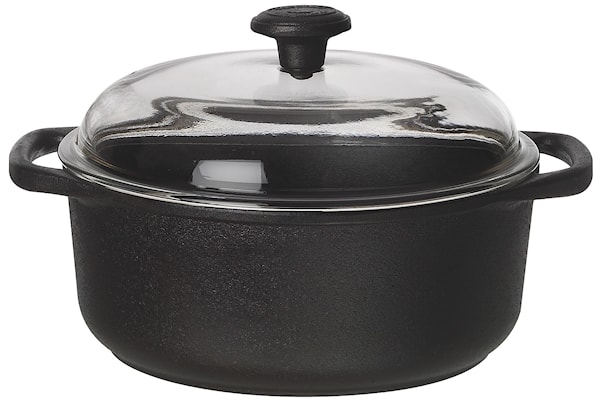 Traditionell gryta med glaslock från Skeppshult. Denna gjutjärnsgryta kan du med rätt skötsel ha hela livet. Grytan har en naturlig non-stickyta av svensk ekologisk rapsolja som förbättras med tiden - gjutjärnskärl är gjorda att hålla år efter år. Trots att värmekällor kommer och går kommer alltid gjutjärnet bestå - denna gryta kan du nämligen ha på alla värmekällor, från öppen eld till induktionshäll. I en väl infettad gjutjärnspanna behövs det dessutom inte mycket fett.