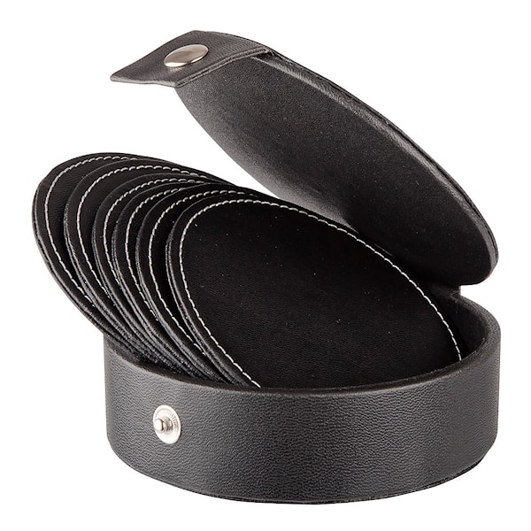 Exklusiva glasunderlägg av konstläder som både skyddar mot fläckar och dekorerar hemmet. Kommer i ett matchande etui. Säljs i 6-pack.