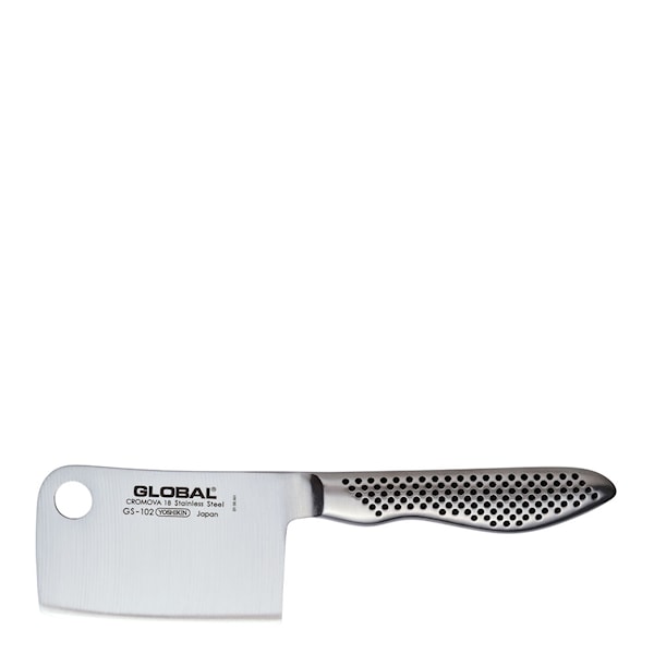 Global GS-102 minihacka 8 cm är tillverkad i Globals egen stållegering Cromova 18 för hög skärpa, slitstyrka och rostmotstånd. Den snäva slipvinkeln på cirka 12,5° ger en extremt vass egg som skär rent och exakt.